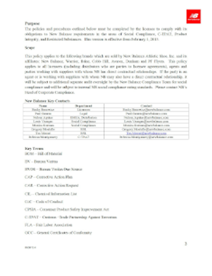 Certified with New Balance's Factory Audit
