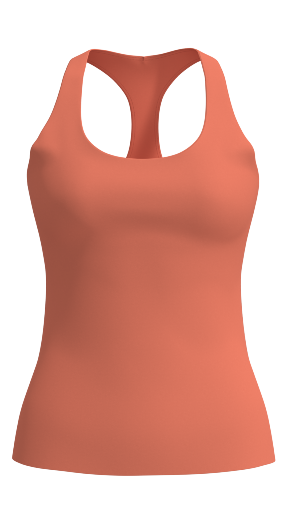 Double spaghetti strap cami tank with contrast binding detail on neckline and straps. Smooth compression fit suited for yoga and studio wear, available for wholesale manufacturing and private label collections.